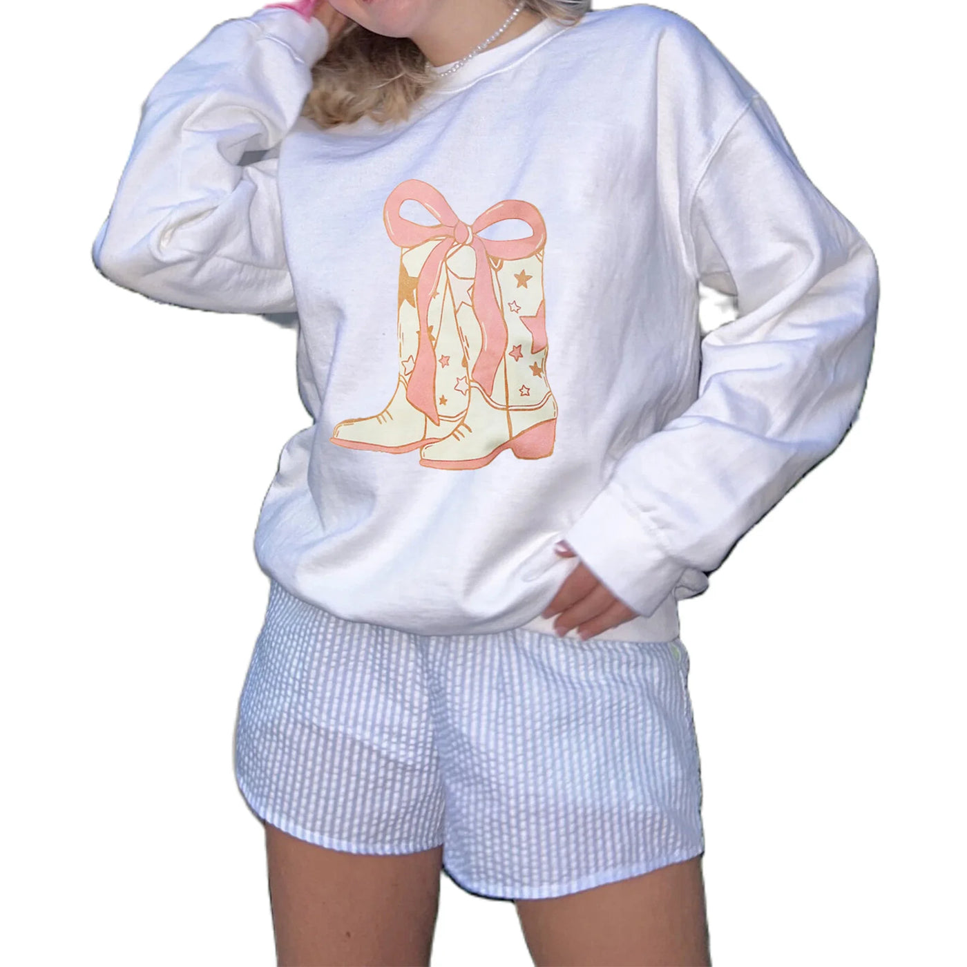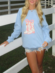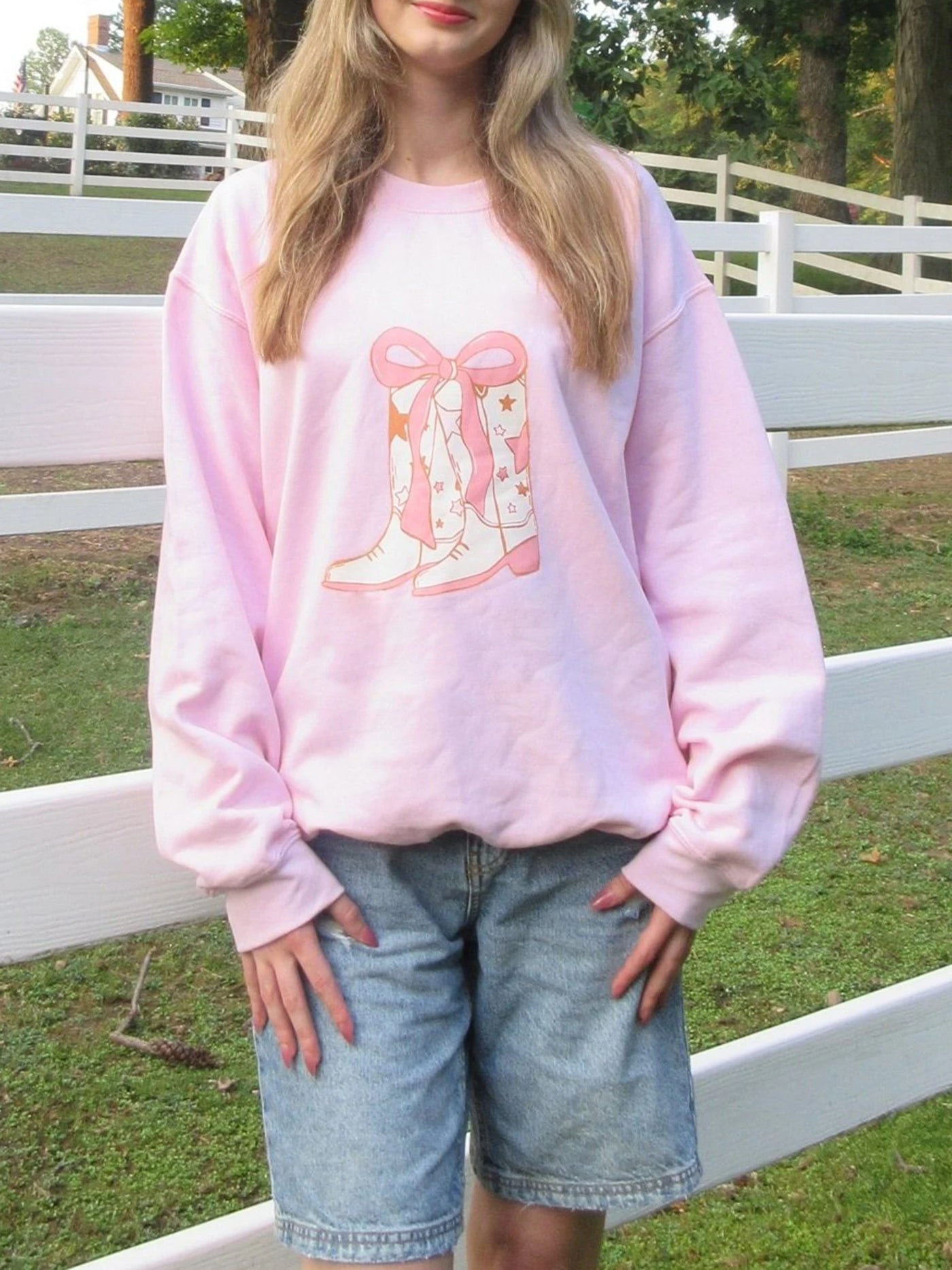 Women Sweatshirt, Long Sleeve Crew Neck Bowknot Boots Print Hoodie Pullover Casual Tops
